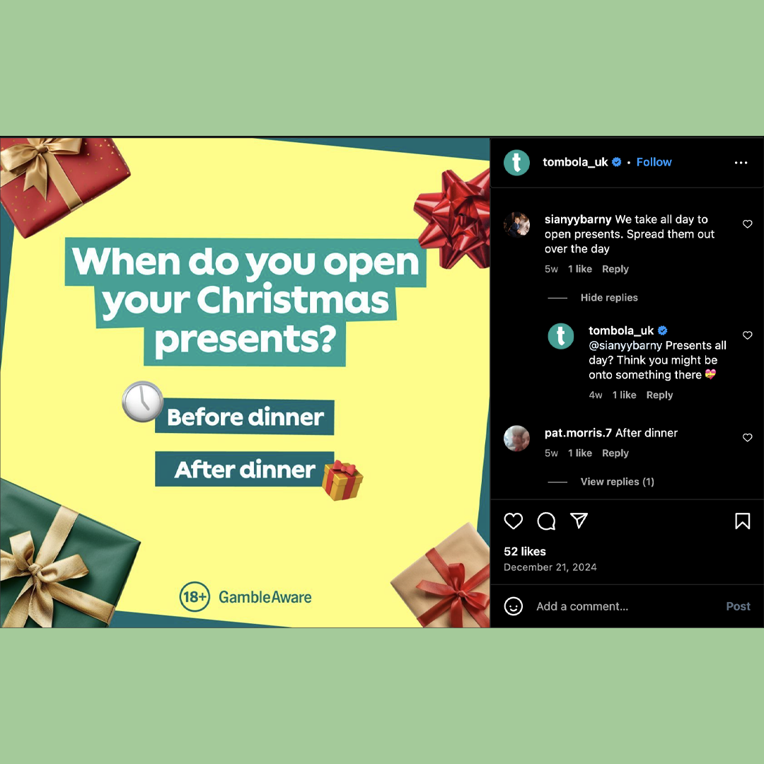 Content ideation and production (BAU, campaigns, and video shoots) + copywriting, reactive content, and community management for clients such as Amazon Alexa, Greggs, Tombola, and Unilever.